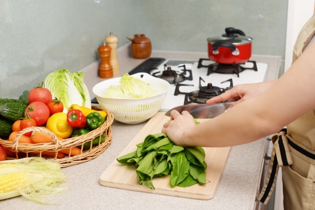 焼き物、茹でる物がある場合は先に焼き始めて茹で物の火を点けておきます。
